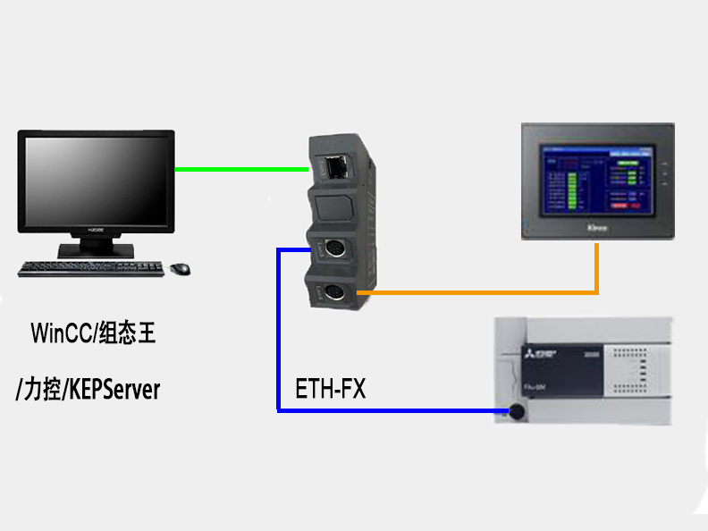 通過ETH-FX,可將三菱FX系列PLC,如:型號FX1N/1S/2N/3S/3G/3GC/3U/3UC 轉成以太網(wǎng),直接與上位機通訊。